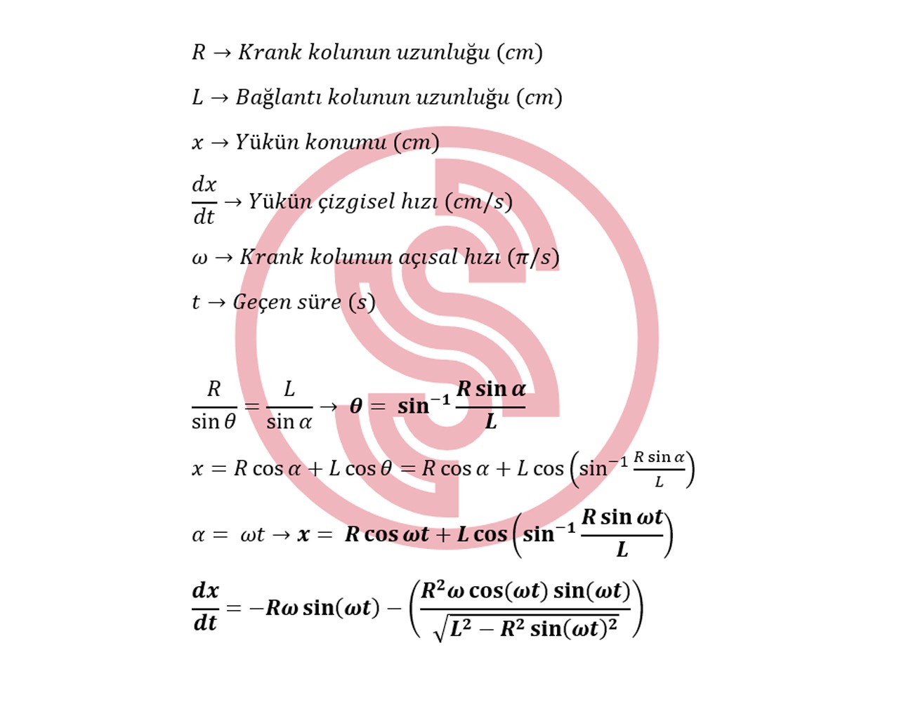 Araba motorları ve daha birçok makinenin iskeletinde görebileceğimiz krank biyel mekanizmasını istediğimiz şekilde kontrol edebilmek için krank kolunun dönüş açısına bağlı bir piston hareket fonksiyonu bulmalıyız.